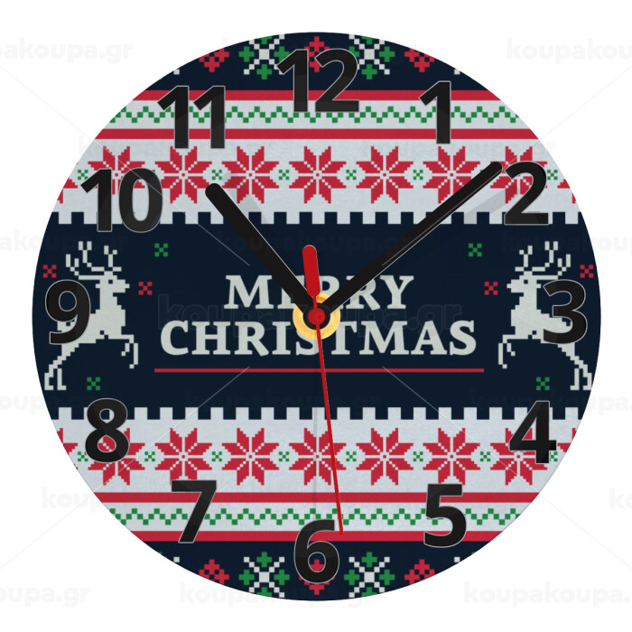 Merry Christmas Vintage, Ρολόι τοίχου γυάλινο (20cm)