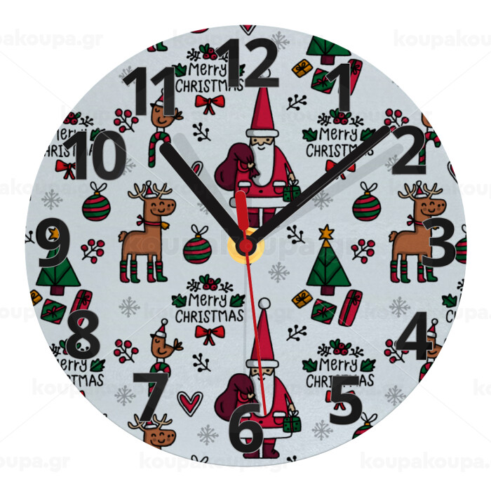 Santas, Deers & Trees, Ρολόι τοίχου γυάλινο (20cm)
