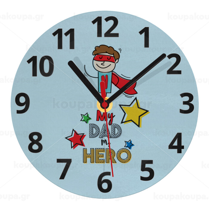 My Dad, my Hero!!!, Ρολόι τοίχου γυάλινο (20cm)