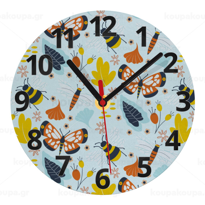 Πεταλούδες, Ρολόι τοίχου γυάλινο (20cm)