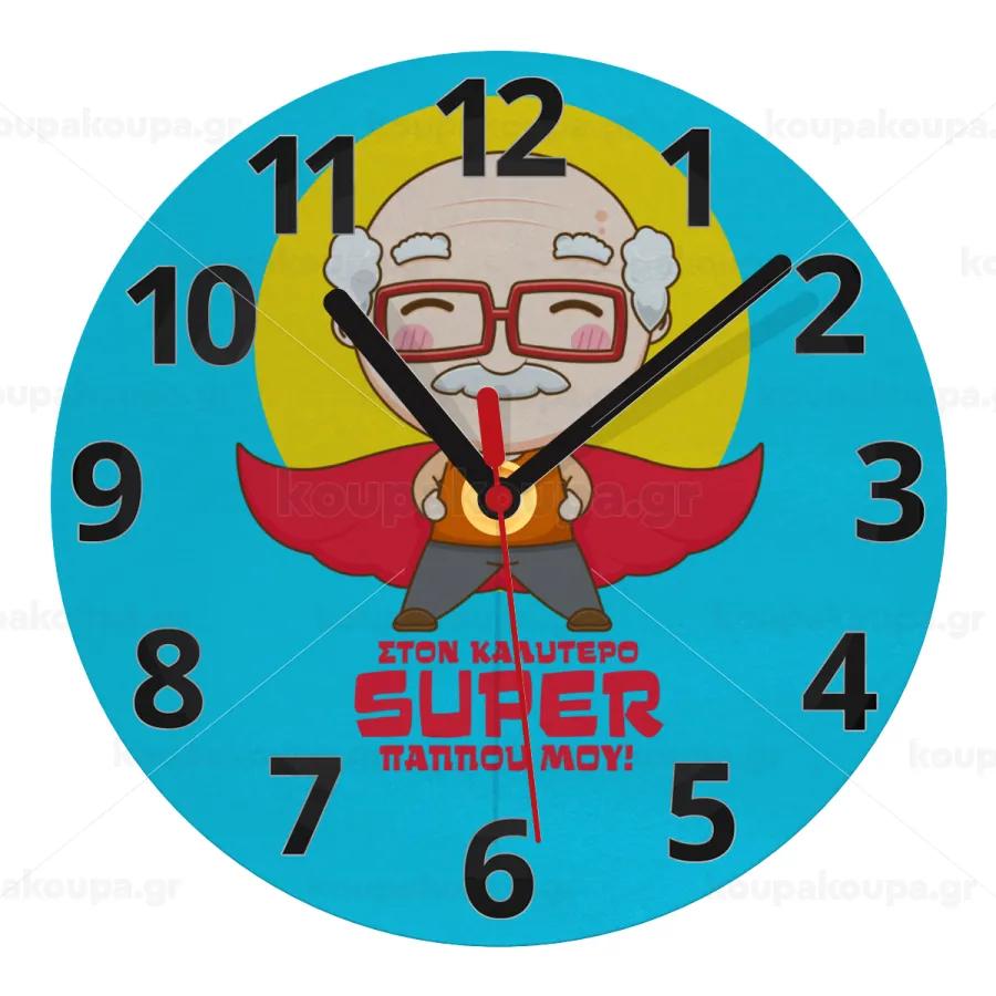 Στον καλύτερο Super παππού μου!, Ρολόι τοίχου γυάλινο (20cm)