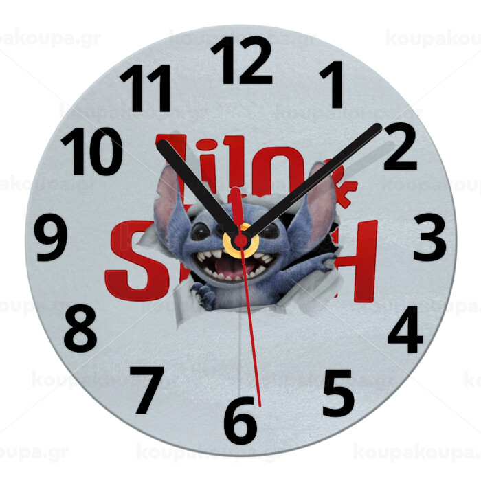 Stitch movie, Ρολόι τοίχου γυάλινο (20cm)