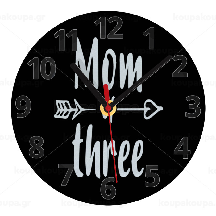 Mom of three, Ρολόι τοίχου γυάλινο (20cm)
