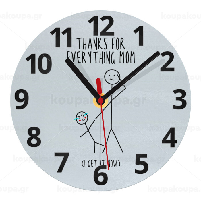 Thanks for everything mom, Ρολόι τοίχου γυάλινο (20cm)