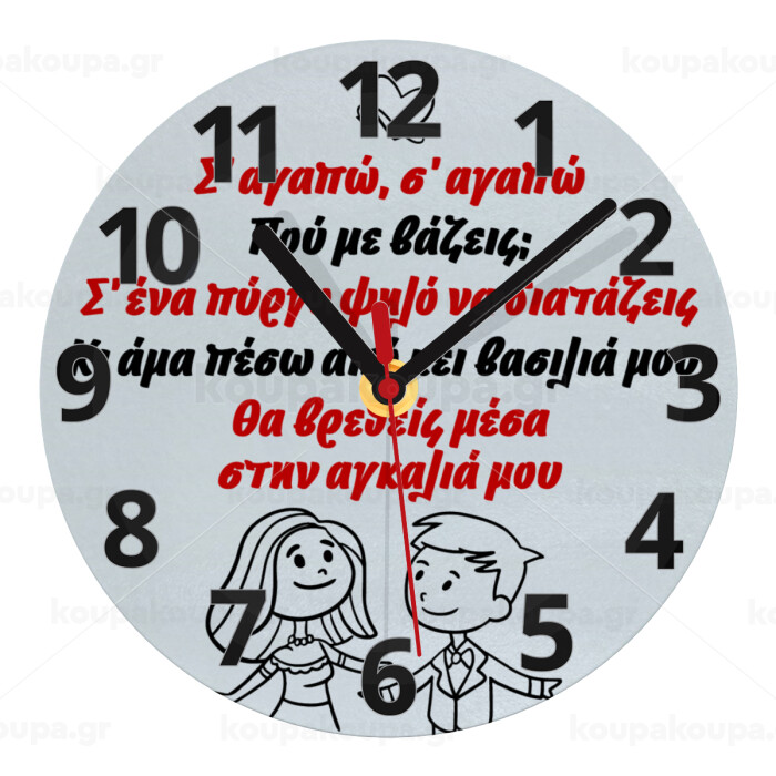 Σ΄ αγαπώ σ΄ αγαπώ που με βάζεις, Ρολόι τοίχου γυάλινο (20cm)