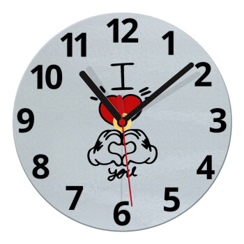 comics hands love, Ρολόι τοίχου γυάλινο (20cm)
