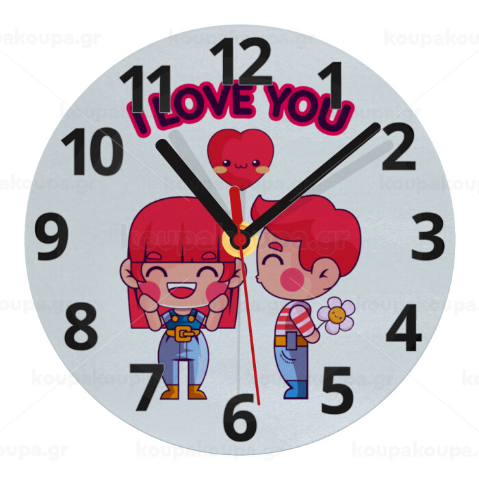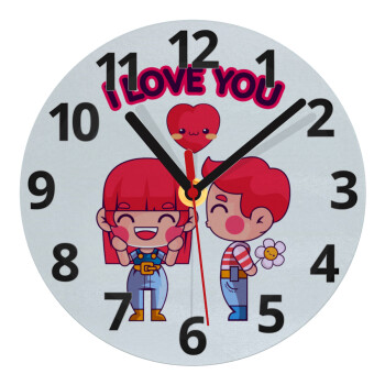 Couple, I love you, Ρολόι τοίχου γυάλινο (20cm)