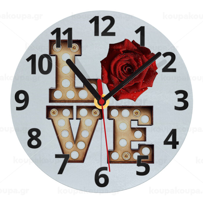 Love lights and roses, Ρολόι τοίχου γυάλινο (20cm)