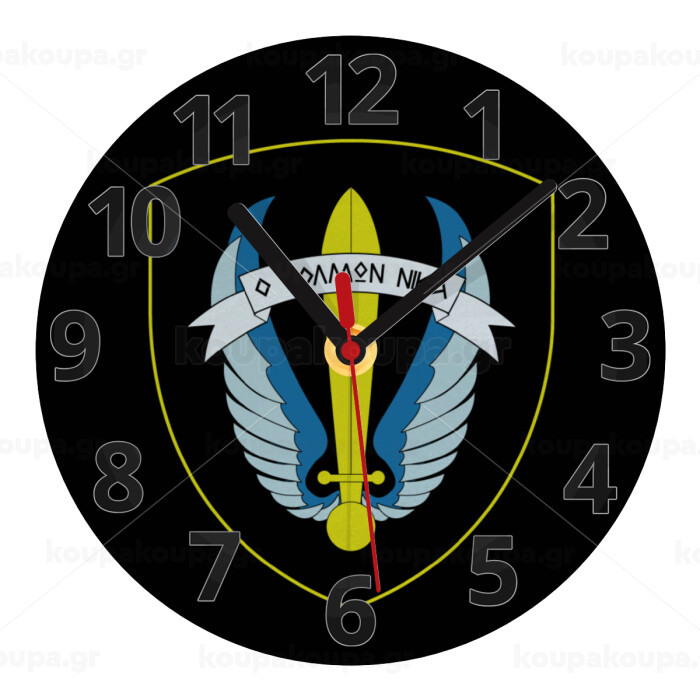 Έμβλημα Μονάδων Καταδρομών Ο Τολμων Νικα - Λοκ, Ρολόι τοίχου γυάλινο (20cm)