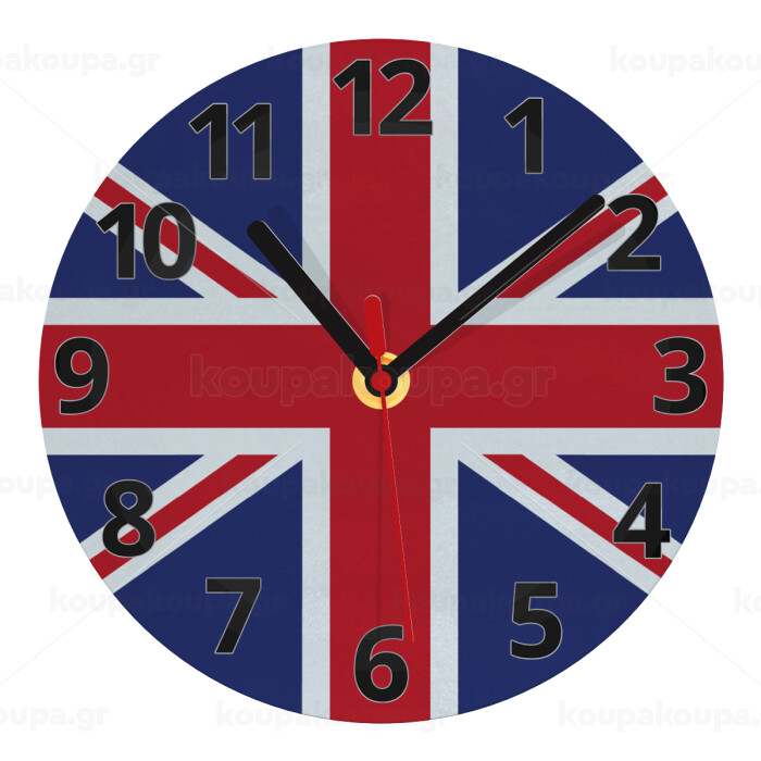 Σημαία Αγγλίας UK, Ρολόι τοίχου γυάλινο (20cm)