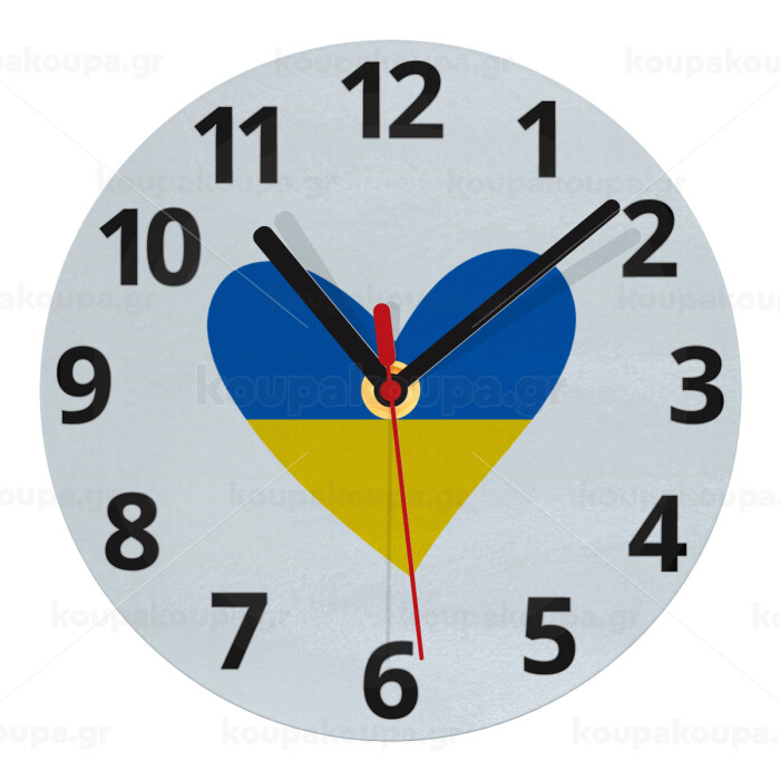 UKRAINE heart, Ρολόι τοίχου γυάλινο (20cm)