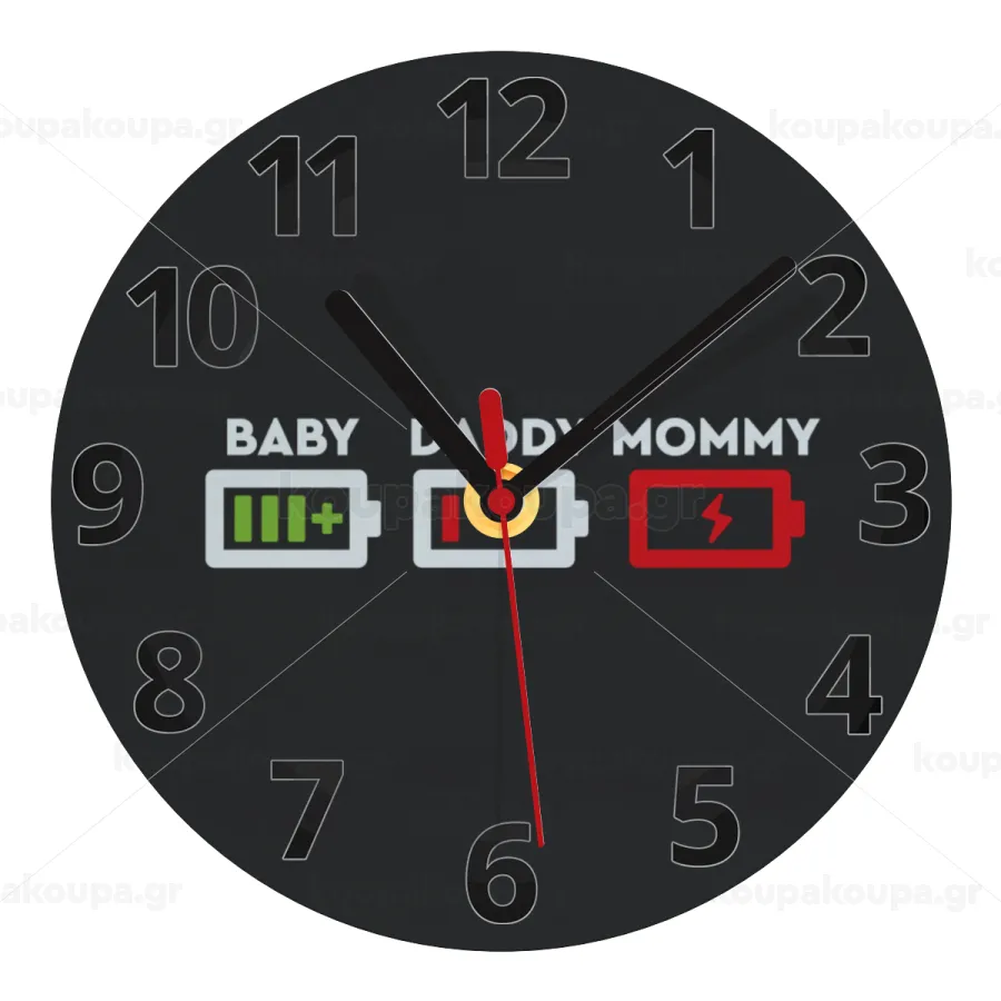 BABY, MOMMY, DADDY Low battery, Ρολόι τοίχου γυάλινο (20cm)