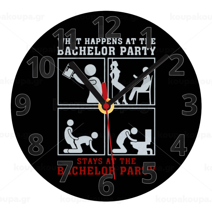 What happens at the bachelor party, stays at the bachelor party!, Ρολόι τοίχου γυάλινο (20cm)