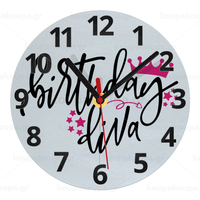 Birthday Diva queen, Ρολόι τοίχου γυάλινο (20cm)