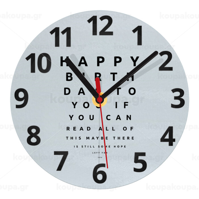 EYE tester happy birthday., Ρολόι τοίχου γυάλινο (20cm)
