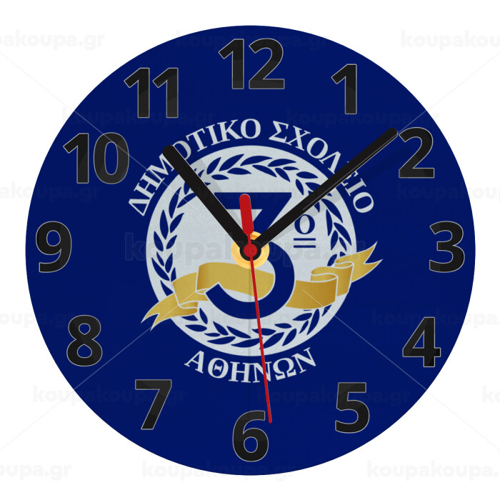 Έμβλημα Σχολικό μπλε, Ρολόι τοίχου γυάλινο (20cm)