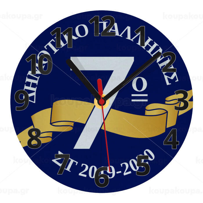 Σχολική μπλε με κορδέλα, Ρολόι τοίχου γυάλινο (20cm)