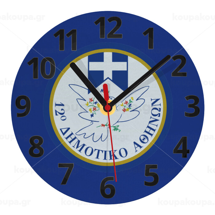 Σχολικό σήμα περιστέρι με δάφνες, Ρολόι τοίχου γυάλινο (20cm)