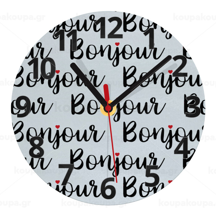 Bonjour, Ρολόι τοίχου γυάλινο (20cm)