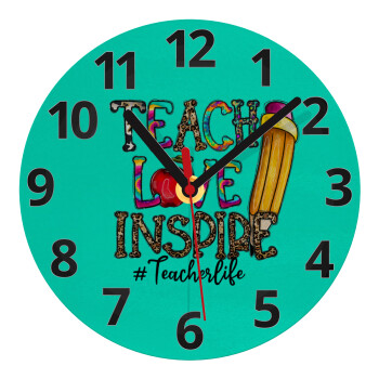 Teach, Love, Inspire, Ρολόι τοίχου γυάλινο (20cm)