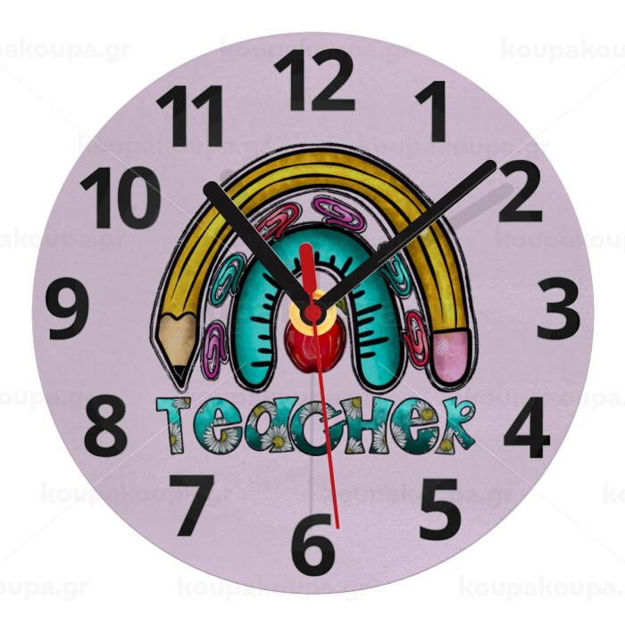 Teacher, Ρολόι τοίχου γυάλινο (20cm)