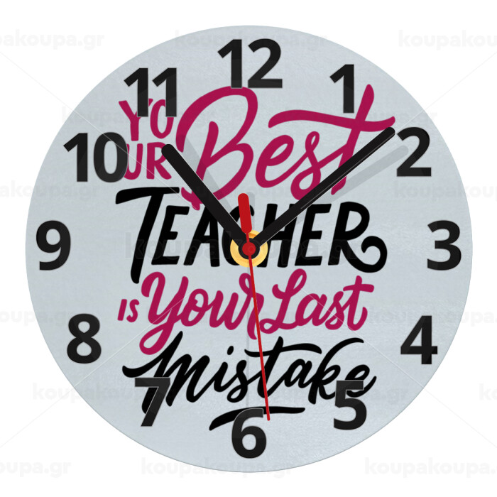 Typography quotes your best teacher is your last mistake, Ρολόι τοίχου γυάλινο (20cm)