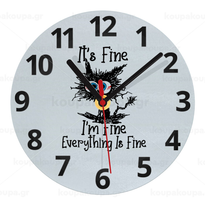 Cat, It's Fine I'm Fine Everything Is Fine, Ρολόι τοίχου γυάλινο (20cm)