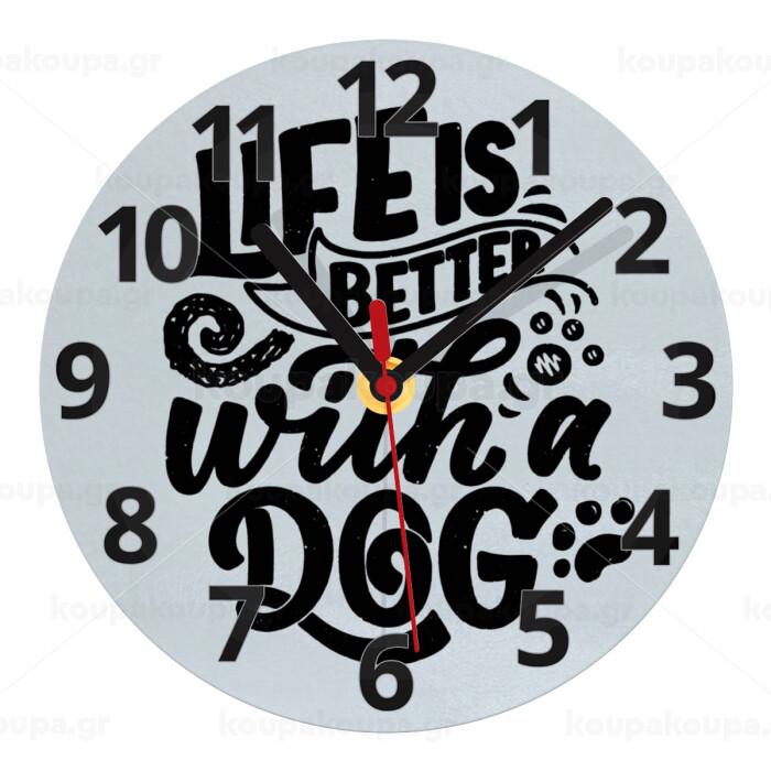 Life is better with a DOG, Ρολόι τοίχου γυάλινο (20cm)