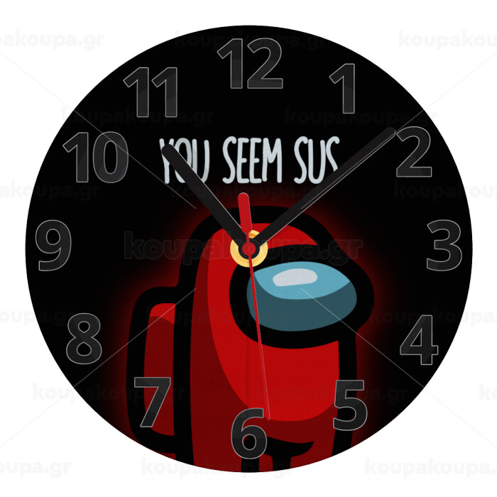 Among US, you seem sus, Ρολόι τοίχου γυάλινο (20cm)
