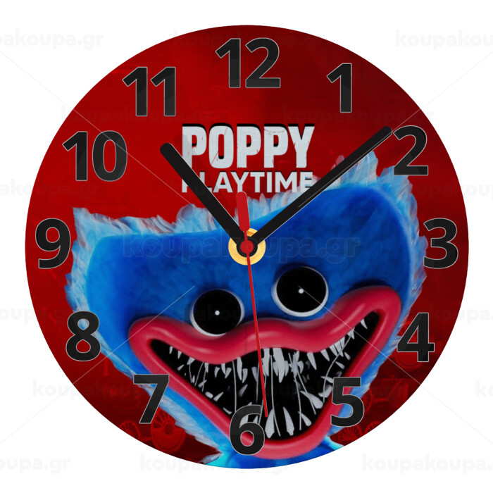 Poppy Playtime Huggy wuggy, Ρολόι τοίχου γυάλινο (20cm)
