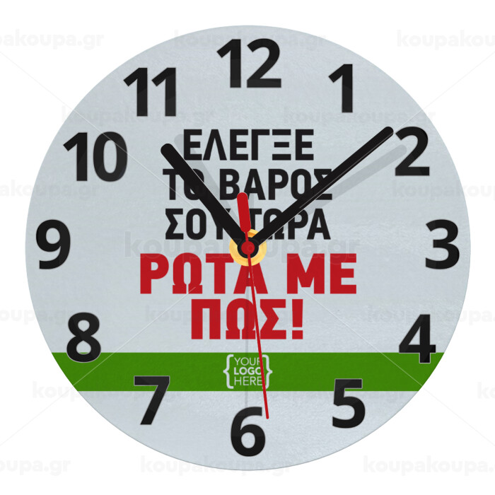 Έλεγξε το βάρος σου ρώτα με πως! {your logo here}, Ρολόι τοίχου γυάλινο (20cm)