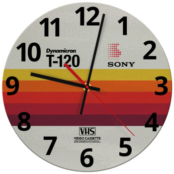VHS sony dynamicron T-120, Ρολόι τοίχου γυάλινο (30cm)