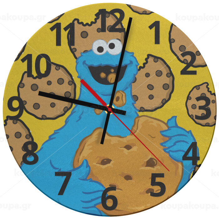 Cookie Monster, Ρολόι τοίχου γυάλινο (30cm)