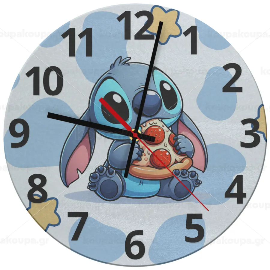 Stitch Pizza, Ρολόι τοίχου γυάλινο (30cm)