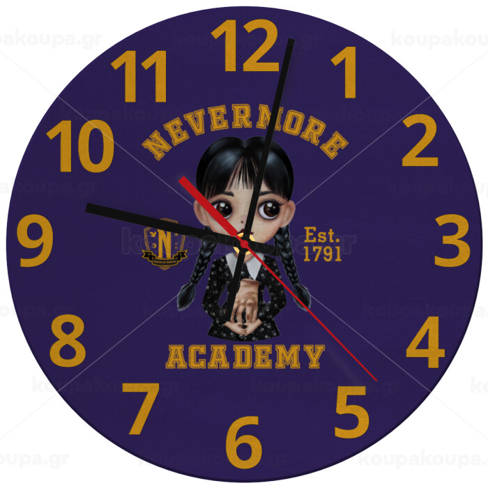 Wednesday Adams, nevermore, Ρολόι τοίχου γυάλινο (30cm)