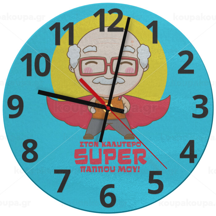 Στον καλύτερο Super παππού μου!, Ρολόι τοίχου γυάλινο (30cm)