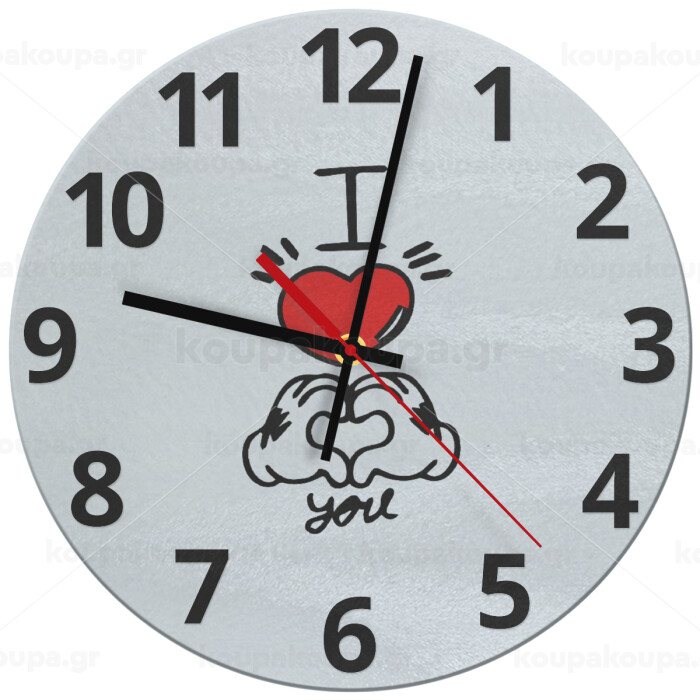 comics hands love, Ρολόι τοίχου γυάλινο (30cm)