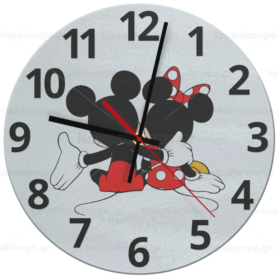 mickey and minnie hags, Ρολόι τοίχου γυάλινο (30cm)