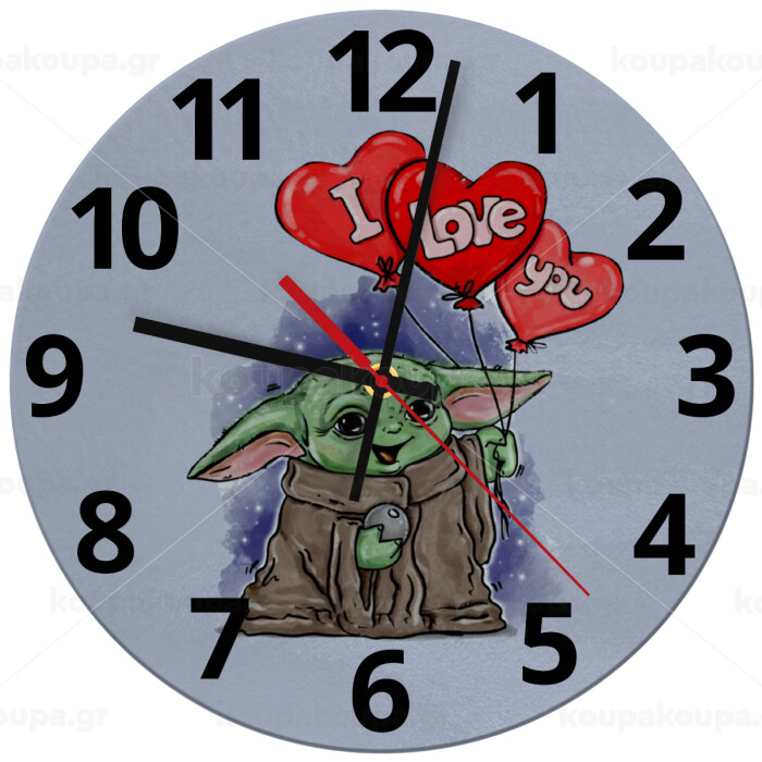 Yoda, i love you, Ρολόι τοίχου γυάλινο (30cm)