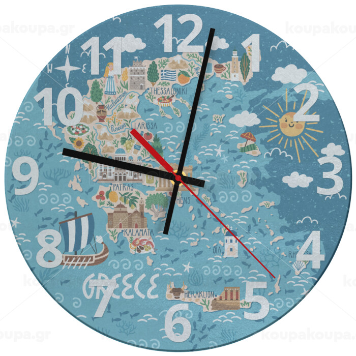 Χάρτης Ελλάδος, Ρολόι τοίχου γυάλινο (30cm)