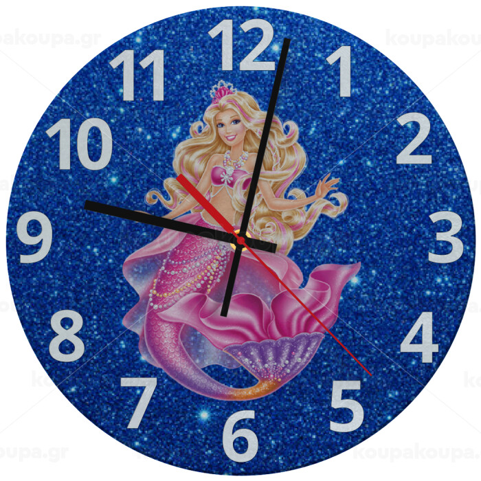 Barbie γοργόνα μπλε, Ρολόι τοίχου γυάλινο (30cm)