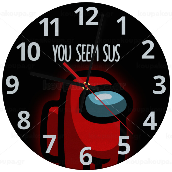 Among US, you seem sus, Ρολόι τοίχου γυάλινο (30cm)