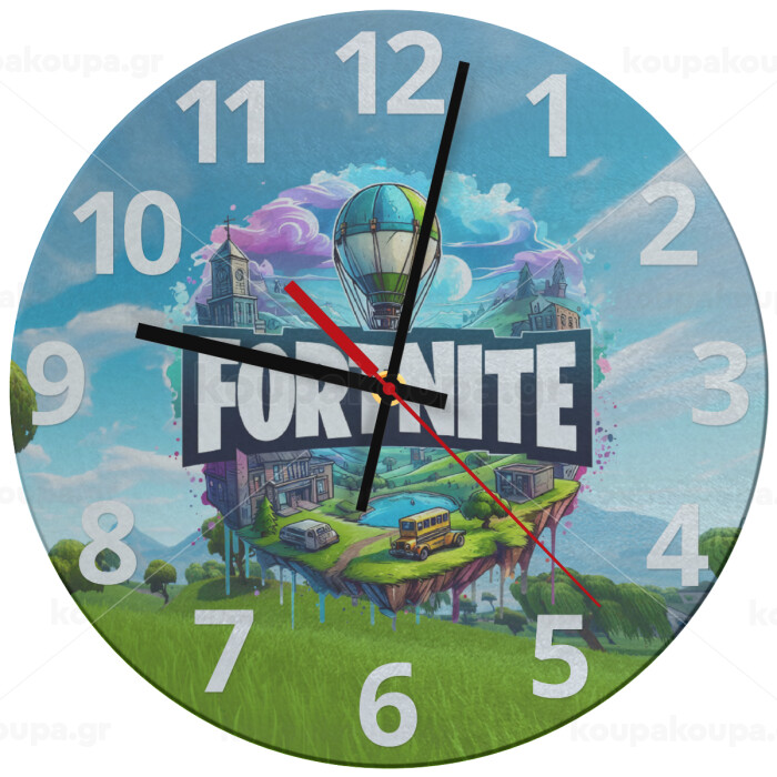 Fortnite land, Ρολόι τοίχου γυάλινο (30cm)