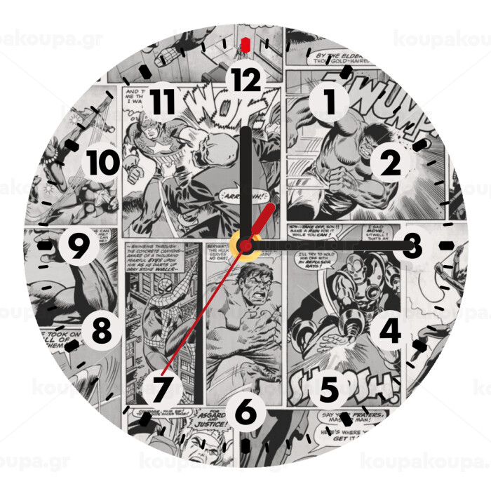 Classic comic Limited B/W, Ρολόι τοίχου ξύλινο (20cm)