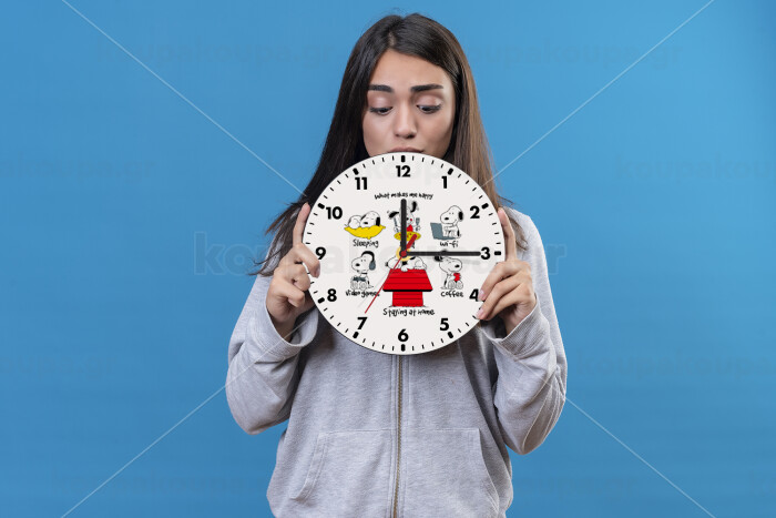 Snoopy what makes my happy, Ρολόι τοίχου ξύλινο (20cm)