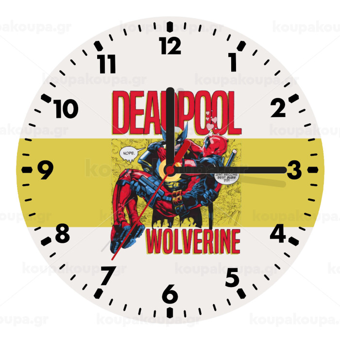 Superhero Deadpool Wolverine, Ρολόι τοίχου ξύλινο (20cm)