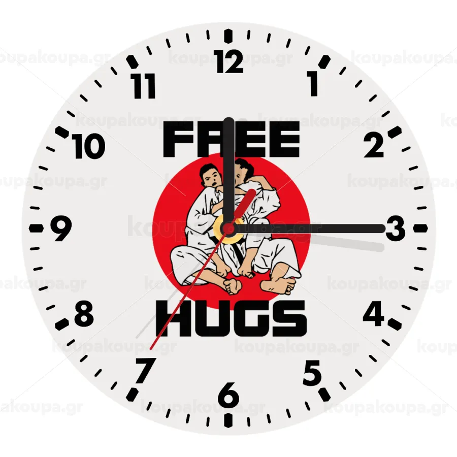 JUDO free hugs, Ρολόι τοίχου ξύλινο (20cm)