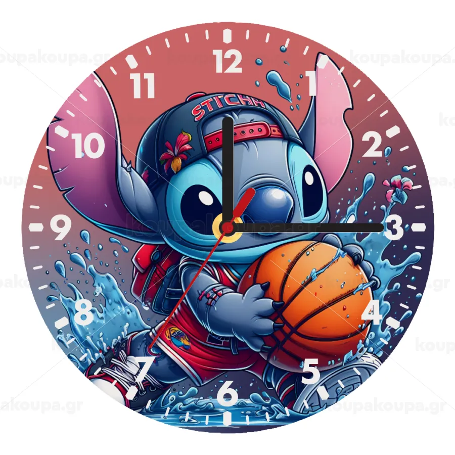 Stitch Basketball, Ρολόι τοίχου ξύλινο (20cm)
