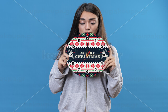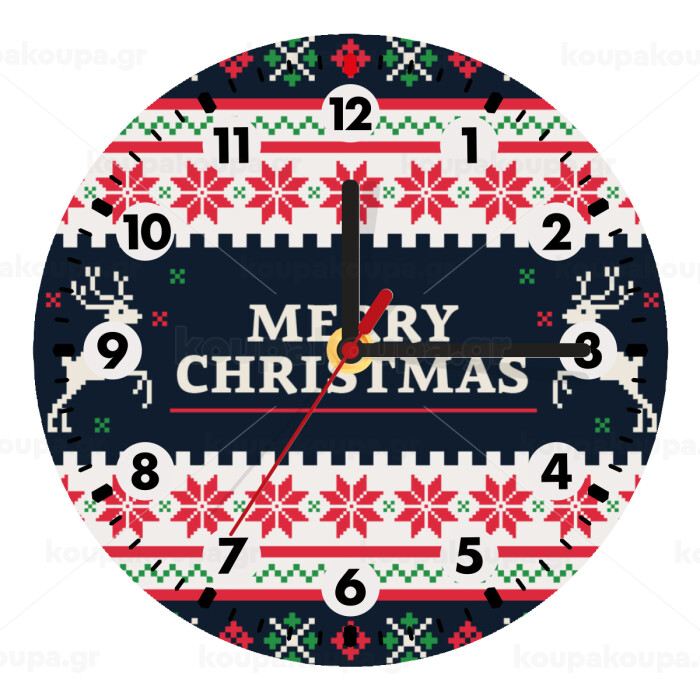 Merry Christmas Vintage, Ρολόι τοίχου ξύλινο (20cm)