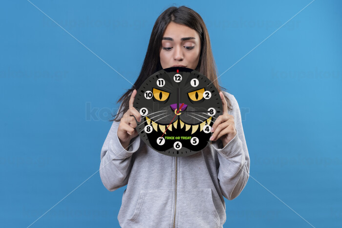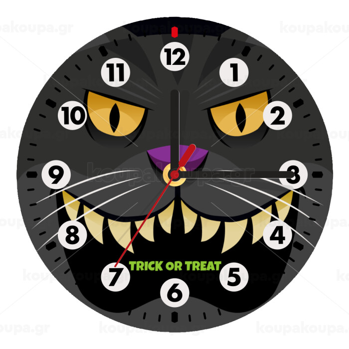 Halloween trick or treat Cat, Ρολόι τοίχου ξύλινο (20cm)